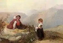In 1820, Collins was elected a Royal Academician (RA), presenting as his diploma picture The Young Anglers. In 1822 he married Harriet Geddes, sister of the portrait painter Margaret Sarah Carpenter. He continued to exhibit with popularity and travel in England and Scotland. In 1826 he painted The Fisherman's Departure, (engraved by Phelps), and in 1828 made a tour of the Netherlands and Belgium, living for short time in Boulogne in 1836. Rustic Hospitality was painted in 1834 and in 1836 Sunday Morning and As Happy as a King, the subject of the latter being suggested to Collins by the story of a country boy whose ideal of regal happiness was swinging on a gate all day and eating fat bacon.[1]