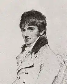 William Daniell was born in Kingston upon Thames, Surrey. His father was a bricklayer and owner of a public house called The Swan in nearby Chertsey. Daniell's future was dramatically changed when he was sent to live with his uncle, the landscape artist Thomas Daniell (1749–1840) after his father's premature death in 1779. In 1784 William accompanied his uncle to India, who worked there on a series of prints, acting as his assistant in preparing drawings and sketches. William's brother Samuel Daniell remained independent of his uncle and also became a topographical artist; he went to South Africa in 1801 and after his return to England published African Scenery and Animals (1804–5), a collection of aquatints. From 1806 he lived in Ceylon.[2]