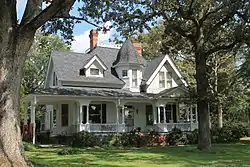 The William Dixon Fowler House was built around 1901 in Spartanburg County, South Carolina by William Dixon Fowler.[2] The Queen Anne style house is believed to have been built from plans published by prolific residential architect George F. Barber. The wood-frame house features a high level of carpentry and detailing. The house's chief features are a wrap-around porch, a porte-cochere, and a second-story turret embedded in the slope of the main roof. A contemporaneous smokehouse is also considered a contributing feature.[3]