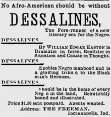 - "'Dessalines!' a Critical Analysis of Wm. Edgar Easton's Striking Tragedy". The Freeman. Vol. 5, no. 36. September 9, 1893. p. 1.