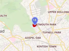 It is situated just east of Parliament Hill and north of Gospel Oak railway station. It is next to Parliament Hill School, a girls' school.