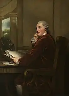 In the dispute within the Whig party over the French Revolution, Fitzwilliam agreed with Edmund Burke over Fox and Richard Brinsley Sheridan but did not wish to split the party or endanger his friendship with Fox, the party's leader in the Commons.[40] Burke's son Richard had lately been appointed Fitzwilliam's London agent. When Richard Burke wrote to Fitzwilliam on 29 July 1790 to persuade him to turn Fox against Sheridan (who had split from Edmund Burke in February), Fitzwilliam replied on 8 August that he agreed that "the propriety of entering a caveat against the enthusiasm, or the ambition of any man whatever leading us into the trammels of Dr Price, Parson Horne, or any reverend or irreverend speculator in politics" but Fitzwilliam's letter to Fox did not change his behaviour.[41] Fitzwilliam did not praise Burke's Reflections on the Revolution in France in public when it was published on 1 November 1790, although Burke claimed on 29 November that Fitzwilliam had acclaimed it.[42] Fitzwilliam wrote to his wife (in an undated letter) that the Reflections was "almost universally admired and approved".[43]