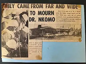 The community of Atteridgeville annually celebrates WF Nkomo Day in his honour. Today a secondary school in Atteridgeville is named after him as well as WF Nkomo Street, formerly Church Street, running from historic Church Square in Pretoria central to Atteridgeville (City of Tshwane). The new shopping centre, Nkomo Village in Atteridgeville was dedicated to his memory in 2018.