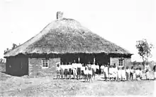 Anderson arranged for supplies to be sent from the Solusi mission, and within a month was teaching 40 students at Rusangu whilst learning the Tonga language.[4][6] Anderson was ordained the same year.[3] The rival priest returned to Rusangu and attempted to lay claim to the mission land. The matter was referred to the district commissioner who awarded the land to Anderson, in compliance with the local custom. The rival was awarded another plot of land on the far side of the river which was developed into a school and hospital.[6] By 1907 Anderson had built a brick house for his family, replacing an earlier mud structure. Nora Anderson contracted blackwater fever on November 24, 1907 and died from the disease at Plumstead Sanitorium, near Cape Town, on February 4, 1908. Her last message to her husband was to urge him to "take care of Naomi; stay by the mission and make it all we have planned, under God, it should be".[4]