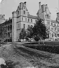 While in Toronto, Hay developed a highly successful architecture firm which he left to his recently acquired partner, Thomas Gundry. His apprentice Henry Langley became Gundry's new partner upon his departure. In Toronto he designed the Toronto General Hospital (1855), St. Basil's Church, Toronto and St. James Square Presbyterian Church (1855–1856), the House of Providence (1855–1858), two of the original buildings at the University of St. Michael's College (1856), the school addition to the Church of the Holy Trinity (1858), the Yorkville Town Hall (1859–1860), and the Oaklands at De La Salle College (1860) among other structures. He also served on the council of the Royal Canadian Institute (1858–1860), was the Vice-President of the Toronto Mechanics' Institute (1859–1861), and was Secretary of the Association of Architects Civil Engineers and Provincial Surveyors of Canada.[1]