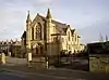 1879–80 | In Gothic Revival style, the main front includes a round-headed double doorway, and a four-light wheel window, flanked by pilasters rising to turrets with decorated pyramidal spires.[25] | II |