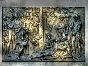 William Jasper was a sergeant in the Continental Army during the American Revolutionary War. During the Battle of Sullivan's Island in 1776, he earned fame by climbing a parapet under enemy fire to reattach his company's flag after the flagpole was destroyed. For his action, he was commended by John Rutledge, the then-President of South Carolina.[1] He was later killed in action during the siege of Savannah on October 9, 1779.[1][2]