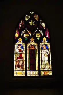 Bolton's first attempts at stained glass were windows for "The Priory", the family home.[4] His first major window, a large Adoration of the Magi, was for the family church where his father was rector, Christ Church at Pelham.[4] It was completed by the time of its consecration on 15 September 1843 and represents the first figural stained glass window made in the United States. It is similar in design to a subject in a sixteenth-century window at St. Martin's Church in Liège, Belgium, which Bolton most likely had seen in his travels some two years earlier. This work lead up to his finest work, at the Holy Trinity Church in Brooklyn, New York.[2][6]