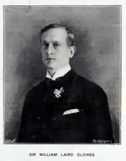 Sir William Laird Clowes FKC (1 February 1856 – 14 August 1905) was a British journalist and historian whose principal work was The Royal Navy, A History from the Earliest Times to 1900, a text that is still in print. He also wrote numerous technical pieces on naval technology and strategy and was also noted for his articles concerning racial politics in the Southern United States. Despite having trained as a lawyer, Clowes had always preferred literature and writing, publishing his first work in 1876 and becoming a full-time journalist in 1879. For the services rendered in his career, Clowes was knighted, awarded the gold medal of the United States Naval Institute and given a civil list pension.[1] He died in Sussex in 1905 after years of ill-health.