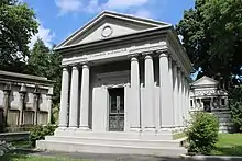 William Elkins died at his summer home, at age seventy-one on November 7, 1903 in Elkins Park, Pennsylvania. He was interred at Laurel Hill Cemetery in Philadelphia.[1] He left behind an estate valued at $25 million.[11] Among his philanthropic gifts, William Elkins left $240,000 to the Masonic Home for Girls in Philadelphia. He bequeathed his art collection to the city to be given following the death of his last heir.[16]