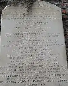 He was born in Dublin to Samuel Molyneux (1616–1693), lawyer and landowner (whose grandfather, Sir Thomas Molyneux, had come to Dublin from Calais in the 1560s), and his wife, Anne, née Dowdall.[1] The second of five children, William Molyneux came from a relatively prosperous Anglican background, with his father established at Castle Dillon in County Armagh, and his uncle Colonel Adam Molyneux holding large estates inherited from the Dowdall's in Ballymulvey, near Ballymahon in County Longford. He was close to his brother Sir Thomas Molyneux, with whom he later shared philosophical interests. His sister Jane married Anthony Dopping, the eventual Anglican Bishop of Meath. In 1671 Molyneux started at Trinity College, Dublin where he became an avid reader of the leading figures of the Scientific Revolution. After attaining a Bachelor of Arts there, Molyneux was sent to study law in the Middle Temple, London from 1675 to 1678. In 1678 he married Lucy Domville (?–1691), the youngest daughter of Sir Wiliam Domville , the Attorney-General for Ireland, and his wife Bridget Lake. His wife became ill, which led to blindness after their marriage, and died young. Of their 3 children, only Samuel Molyneux (1689–1728) lived past childhood. Samuel went on to become an astronomer and politician who worked with his father on various scientific endeavours.[2]