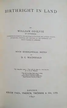 - Ogilvie, William (2010) [1970 (1891)]. DC MacDonald (ed.). Birthright in Land (online resource). Cornell University Library.