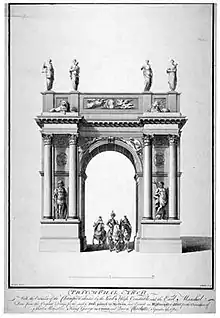 Oram was educated as an architect, and, through the patronage of Sir Edward Walpole, obtained the position of master-carpenter to the Board of Works. He designed a triumphal arch for the coronation of George III of Great Britain, of which an engraving was published. Oram also devoted much time to landscape-painting in the style of Gaspar Poussin.[1]