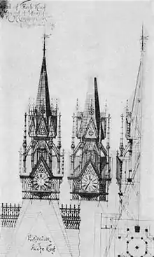 Tower House (1891), once a landmark on the corners of Spring and Flinders Streets, was a fairly standard Italianate body, topped by a steeply pitched Gothic roof and spiky corner tower with a witches hat roof.