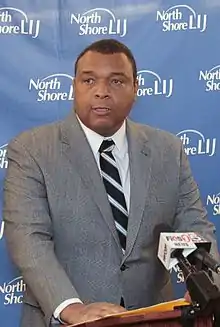 ![]() Suffolk County Legislator William R. Spencer, M.D. speaks a press conference in February of 2015 | |