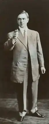 In 1907, Sadler began giving lectures on the Chautauqua adult-education circuit, which featured itinerant speakers discussing self-help and morality. Sadler often spoke about attaining physical and mental health without drugs. He also promoted hydrotherapy and discussed moral issues that related to men.[45] Sadler, his wife, her sister, and a friend, formed a four-member lecture company that gave two- or three-day engagements, sometimes accompanied by an orchestra. Newspapers published favorable reviews of the productions.[46] The lectures proved to be a lucrative endeavor: it was rumored that he became one of the best-paid Chautauqua speakers.[26]