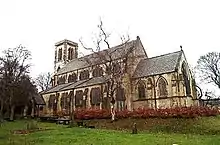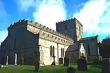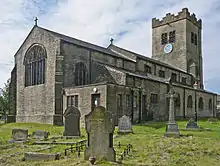This is a Grade I listed building in Church Cliff Drive, Filey, Scarborough, the oldest parts of which were built in the twelfth to fifteenth centuries.[192] Barber restored and partly rebuilt it in 1885, but the roof was fire-damaged in 1908 and had to be partly rebuilt. The extent of Barber's renovation is unknown, but the south porch and nave windows are his work.[192][193][194][nb 29]