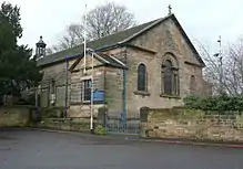 This is an unlisted building in Killinghall, Harrogate, North Yorkshire.[161] It is a large building for its simple, bell-gable design. It retains its original pews, font and pulpit. It has two bells by John Taylor of Loughborough and Mears & Stainbank, plus a clock with tower mechanism.[162][nb 20]