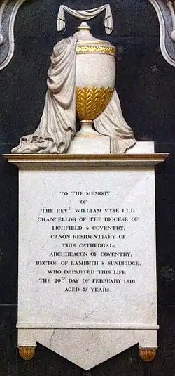The Ven. William Vyse, FRS, FSA (30 October 1742 in Lichfield – 20 February 1816 in Lambeth) was Archdeacon of Coventry from 1793 until his death,[1][2][3] and Chancellor of Lichfield from 1798.[4]