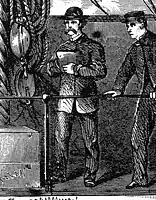 The only known drawing of Waud is a depiction of himself sketching in the rigging of the U.S. Steamer Mississippi in action against confederate gunboats. This detail from Waud's illustration of a naval engagement during Farragut's expedition against New Orleans was published in the May 31, 1862 edition of "Frank Leslie's Illustrated Newspaper".