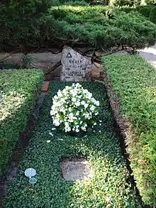 He died in West Berlin on 10 March 1962 and is buried in the Forest Cemetery in the Dahlem district. The grave is identified as a "grave of honour of the City of Berlin" exempting it from the German practice of erasing graves if relatives fail to maintain payments for upkeep.