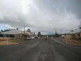 The original town had been built on the Albany side of the river, but was subject to increasing floods due to the clearing of the land for intensive farming; therefore the town was relocated to the Perth side of the bridge. The town site was surveyed in 1905 and most of the buildings in the present town site were constructed after that time.[8][4]