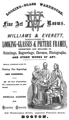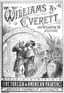 Williams & Everett (est.1855) in Boston, Massachusetts, was an art dealership run by Henry Dudley Williams and William Everett. The firm sold original artworks by American and European artists, as well as "photographs and carbon-pictures of eminent persons, noted places, and famous paintings."[1] It also continued the mirror and picture frame business that had been established earlier by the Doggett brothers.[2]