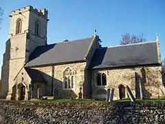 The village has two public houses: the Fox, built in 1870[16][17] and the Three Horseshoes, dating from the late eighteenth century.[18] The village also has a village shop, which incorporates a Post Office, and a large pond. The parish church of All Saints has a tower with clocks on two sides; two sides are blank, supposedly so that farm labourers would not be able to tell when to leave work. This continues to be an active parish church in the village. Its daughter church of St Paul's, Letchworth became a separate parish church in 1963.