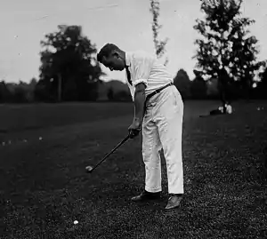![]() Ogg hitting a fairway wood shot, c. 1920 | |