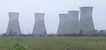 In the 1950s, two coal-fired power stations were built on a site off Twyford Road, between Willington and Findern. The stations were privatised and sold to National Power in the early 1990s and eventually closed in the mid-1990s. Although most of the stations were demolished at the turn of the millennium, the five cooling towers continue to dominate the skyline of the local area. The site[12] was earmarked for a large residential development, but the application was rejected and in 2011 permission was granted for a new power station to be built on the site.