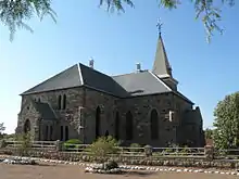 Williston was originally known as Amandelboom (Afrikaans "almond tree") as a large almond tree stood as the focal point of the town by the Sak River. The tree had been planted in 1768 by Johan Abraham Nel, a farmer and owner of the land that was to become the town, to commemorate the birth of one of his sons.[2] In the early 19th century, the district was populated by pastoralists who constantly moved their livestock between springs in search of fresh grazing areas. These pastoralists were derogatorily referred to as 'Basters' as the pastoralists were of mixed race and descendants of the Khoi and Dutch.[2] In 1845, the community requested that the Rhenish Church, which had a mission station in Wuppertal, establish another mission station in Williston. Two missionaries were sent to Williston to assist the community with their spiritual needs. By 1845 a Rhenish mission station was established in the area by Johann Heinrich Lutz.