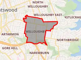 - Australian Bureau of Statistics (27 June 2017). "Willoughby (State Suburb)". 2016 Census QuickStats. Retrieved 9 March 2018.