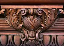 ![]() Cross of St. Andrew on the fireplace mantelpiece in Willowdale | ![]() Column using natural designs in library | ![]() Original entrance hall and current parlor at Willowdale |