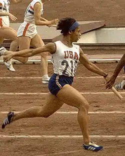 Willye Brown White (December 31, 1939 – February 6, 2007)[2] was an American track and field athlete who took part in five Olympics from 1956 to 1972. She was America's best female long jumper of the time and also competed in the 100 meters sprint. White was a Tennessee State University Tigerbelle under Coach Ed Temple. She was African-American. The above picture is of team mate Marilyn White.[3]