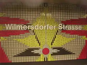 It is adjacent to and considered an interchange station with Berlin-Charlottenburg station on the S-Bahn. It was opened in 1978 and designed by Rümmler. The pattern of the tiles on the walls should resemble a lily which is on the crest of Wilmersdorf. The next station southbound is Adenauerplatz.[1]