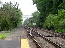 The Wildcat Branch, used by Amtrak Downeaster trains and some Haverhill Line express trains, connects with the Lowell Line at Wilmington station. The single-track branch splits from the northbound track just north of the platform. Southbound trains coming from the Wildcat Branch cannot reach the southbound platform; instead, they use the northbound platform. An interlocking south of the station allows these trains to switch onto the southbound track.[5]