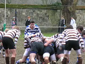 The game somewhat resembles Rugby football, as players can kick the ball or run with it.[9] Tatler quotes a pupil's description of it as "our combination of football and rugby, likened to an English bulldog playing with a ball".[14] The Financial Times commented that the game would serve as a substitute for the Ancient Greek game of Pankration, but that a "Kasparov-like mind" was necessary to cope with the ever-changing rules.[15] The aim of the game is to kick the ball (an overly inflated association football) into Worms - the area at either end of canvas. Unlike in Rugby football, a player need only kick the ball across the Worms line to score.[13]