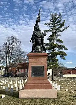 - There are also two "monuments," typical to National Cemeteries created for reinterred Union soldiers. They are both seven feet, six inches (152 mm) in height, and are made of an original cast iron seacoast artillery tube, secured by a concrete base. One is located on each side of the flagpole. There is no inscription on either monument.
