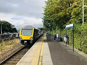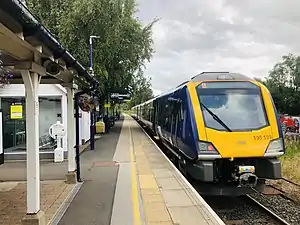 Northern run a mixture of Class 156 and Class 195 diesel multiple units at a frequency of one per hour in each direction along the line, which runs through Staveley, Burneside, and Kendal, and then interchanges with Avanti West Coast and TransPennine Express services at Oxenholme Lake District. A couple of services per day then run to Manchester Airport, while a few continue beyond Oxenholme but only as far as Lancaster or Preston.[6] There is also a service to Blackpool North every weeknight and a daily service from Barrow-in-Furness.