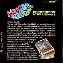 The original band, the Animals, broke up in 1966 and this band was entirely new except for lead singer Eric Burdon and drummer Barry Jenkins, who joined the original lineup when John Steel left in February 1966. With the new band, featuring guitarist Vic Briggs, bassist Danny McCulloch, and electric violinist John Weider, Burdon began to move from the gritty blues sound of the original mid-1960s group into psychedelic music.