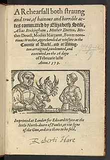 Witchcraft pamphlet:A Rehearsal both Strange and True, 1579