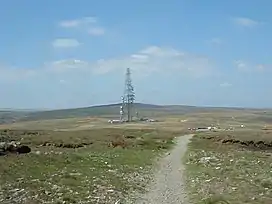 The hill is located west of the A672 road and south west of Junction 22 on the M62 motorway. Windy Hill cutting is up to 120 ft (37 m) deep and the longest on the M62.[1] A pedestrian footbridge, 320 ft (98 m) long and 65 ft (20 m) above the carriageways, carries the Pennine Way above Windy Hill cutting. Its parabolic arch and splayed legs are designed to withstand wind speeds up to 120 mph.[2] Snow lies on Windy Hill for an average of 35 days annually and the area is prone to fog or low cloud.[3] The boundary stone between Greater Manchester and West Yorkshire is in the cutting.[4] The Longden End Brook rises between the hill and the motorway and the Piethorne Brook drains to reservoirs to the southwest. A radio transmitter is located to the east.