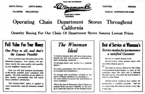 - "elcome Extended to Wineman Store". Oxnard Press-Courier. August 20, 1924.