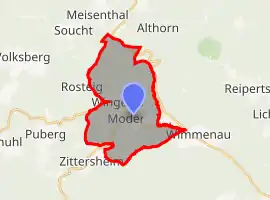 Wingen-sur-Moder (German: Wingen an der Moder, Rhine Franconian: Winge)[3] is a commune in the Bas-Rhin department in Grand Est in north-eastern France.[4] The name, literally translated as "Wingen on the Moder", is often shortened to Wingen,[5] although this is the name of a small commune in the Haguenau-Wissembourg arrondissement.