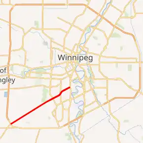 This major road begins at Oak Bluff and runs concurrently with PTH 3 to the Winnipeg city limits, where PTH 3 officially terminates. It goes through residential, commercial, and industrial areas before reaching its eastern terminus with Pembina Highway in the city's south end. The speed limit ranges from 60 km/h (37 mph) to 100 km/h (62 mph). It passed directly by the old village of Fort Whyte which is now considered part of the Whyte Ridge development in Winnipeg. It also provides access to the Trans Canada Trail at McGillivray Boulevard and Front Street. The Trans Canada Trail walks one through the Fort Whyte Centre.