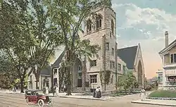 Winslow Congregational Church was a historic church building located at 61 Winthrop Street in Taunton, Massachusetts. The church was built in 1897 and added to the National Historic Register in 1984. At that time, it was considered one of the city's "most impressive" 19th century churches, with its sandstone construction and Gothic detailing.[2]