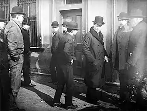 In early January 1911, Churchill arrived at the "Siege of Sidney Street" in London. He gave his own account of the incident in his book Thoughts and Adventures. There is some uncertainty as to whether Churchill attempted to give operational commands. Biographer Roy Jenkins comments that the reason he went was because "he could not resist going to see the fun himself" and that he did not issue commands.[3]: 194 A famous photograph from the time shows Churchill at the scene, peering around a corner to view the gun battle between cornered anarchists and Scots Guards. His role and presence attracted much criticism. The building under siege caught fire, and Churchill supported the decision to deny the fire brigade access, forcing the criminals to choose surrender or death. After an inquest, Arthur Balfour remarked, "He [Churchill] and a photographer were both risking valuable lives. I understand what the photographer was doing but what was the Right Honourable gentleman doing?"[3]: 195 The significance was that the whole highly publicised affair increased Churchill's already incipient reputation for being a frenetic and far-from-calm Home Secretary.[3]