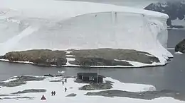 The Falkland Islands Dependencies Survey established a base on Winter Island in 1947, Base F (Argentine Islands).[1] The main hut, built on the site of the old BGLE hut, was named "Wordie House" after Sir James Wordie, a member of Shackleton's Imperial Trans-Antarctic Expedition who visited during its construction.[2]