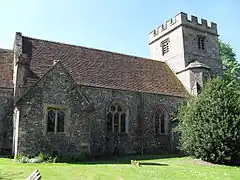 The village church is named after St Andrew and is a Grade II listed building, being so designated on 14 July 1955.[6] It was designed by Thomas Henry Wyatt and built during 1861–62.[7] It is in the Perpendicular style and faced with flint with a tiled roof. It has a simple plan with nave, chancel, north aisle and south porch. The tower is on the west end and is built in two stages with a battlemented parapet. Internally, the nave has a hammer beam roof and the chancel a wagon roof. The fifteenth century font has a carved octagonal bowl on an octagonal stem, and the other fittings are nineteenth century.[6]