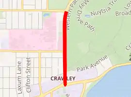 Winthrop Avenue is a major north–south road in the Perth suburbs of Nedlands and Crawley. For most of its length, the road travels alongside the south-western edge of Kings Park, connecting Thomas Street with Stirling Highway, Mounts Bay Road, and the University of Western Australia's Crawley campus.[1] It is the southernmost section of State Route 61,[2] which links Crawley with West Perth and Yokine.